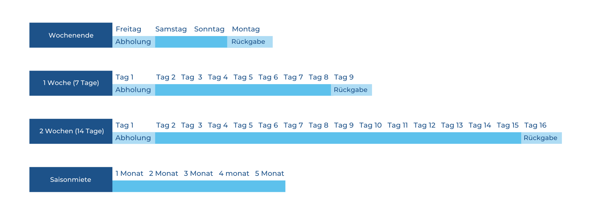 Ihr könnt das Produkt Donnerstag Abend oder Freitag abholen und Montag wieder zurückbringen. Natürlich können wir nach Absprache eine andere Lösung finden.